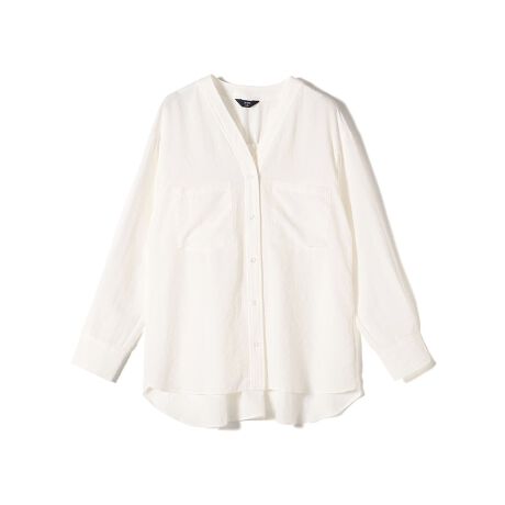 羽織としても、ボタンを留めてブラウス感覚でも着用可能なVネックシャツ。