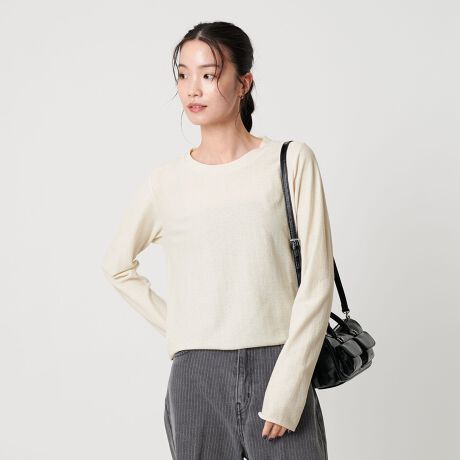 着回し力抜群のミニマルなルックスのラメカットソー。