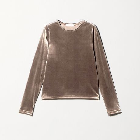 ベロアの素材感を活かしたミニマルな長袖Tシャツ。