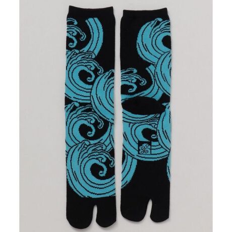 靴下の一大産地 奈良県で作られた足袋型靴下。日本人の足にしっかり馴染む、足袋特有の履き心地。波の家紋をリデザインした粋な柄。波の家紋は、永久性や武勇、縁起の意味があると云われています。