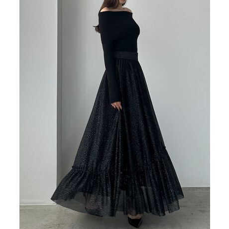 Louere ラメフレアチュールスカート