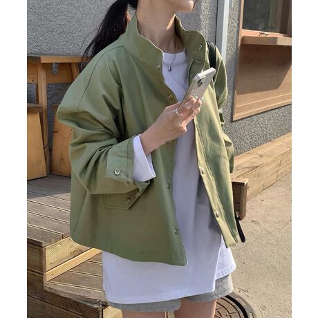 Tシャツやワンピに羽織るだけでスタイリッシュに決まるレディース立ち襟ジャケット。