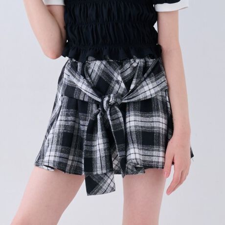 シャツを腰で巻いたようなフェイクデザインがおしゃれ度満点のスカートです。