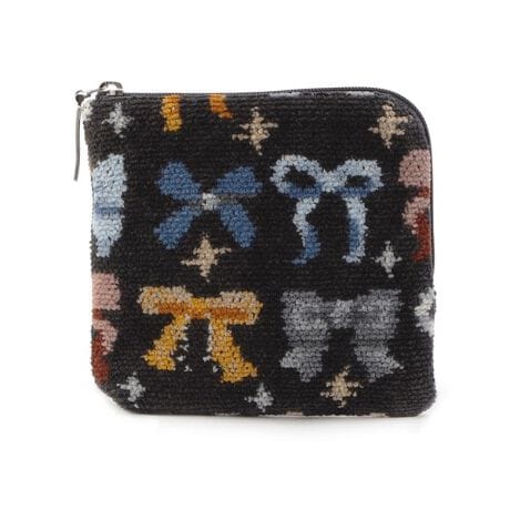 色とりどりのリボンを描いた『メニーリボンズ』のポーチです。大きく開くL字ファスナーは、中身の出し入れがしやすいのが特徴。持ち運びしやすいスリムなフォルムも魅力的。内側には小分け収納に便利なオープンポケットを配しました。ミニ財布として使ったり、リップや目薬、イヤホンを入れたりとさまざまな用途で活躍します。