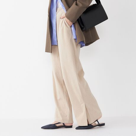 ウエストゴム仕様でストレスフリーな履き心地が魅力のコーデュロイパンツ。