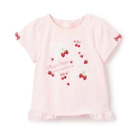 レースリボンといちごの組み合わせが女の子らしいTシャツです。