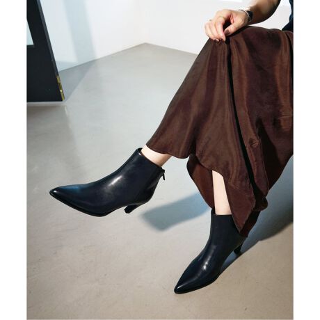 後ろ下がりにこだわったカッティングとセットバックヒールで、足元を綺麗に見せてくれるショートブーツ。
