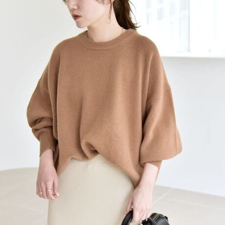 程良いボリューム感のドルマンスリーブが特徴のクルーネックニット。