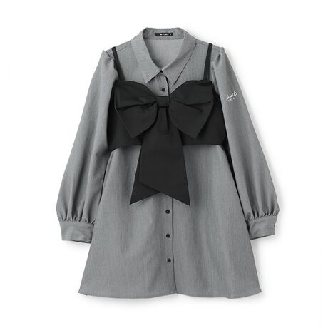 大胆なリボンが目を引くビスチェつきシャツワンピースです。