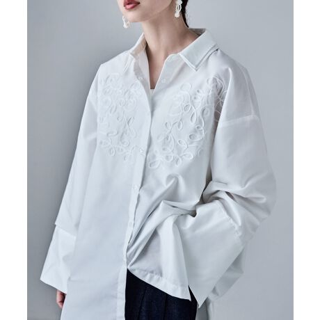 立体的なコード刺繍デザインの、かわいいとは違った綺麗な甘さを感じるオーバーシャツ。