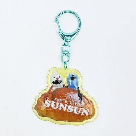立体感がすごい!ぷっくりしていて透け感が可愛いパペットスンスンのキーホルダーです。「パペットスンスン」の主人公スンスンは、パペットの国〈トゥーホック〉に住んでいる6才の男の子です。パッと見は柔らかそうに見えますが、しっかりしたキーホルダー☆カラビナのカラーリングがとってもおしゃれ♪夏にぴったりなデザインなのでぜひお気に入りのバッグやリュックに付けてお出かけしませんか♪