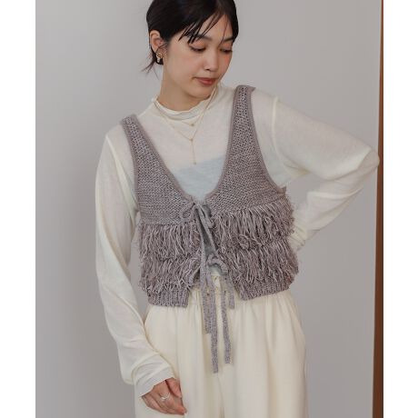 ループ編みがポイントのニットベストは、いつものコーデに遊び心をプラス。前後2WAYで着られるから、着こなしの幅も広がります。ミックス糸の表情豊かな風合いが、シンプルながらも存在感を発揮。スカートにもパンツにも合わせやすく、一枚持っておくと重宝すること間違いなし。