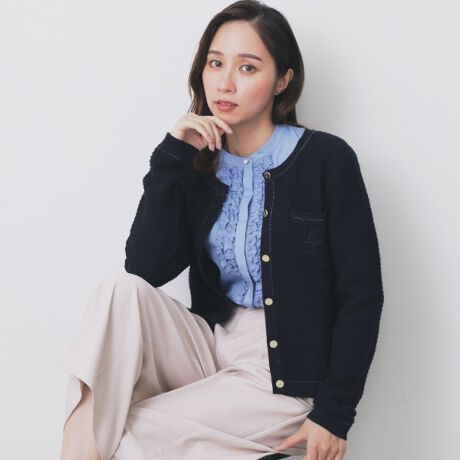 コットンカノコに胸元のエンブレム刺繍が映えるカーディガン
