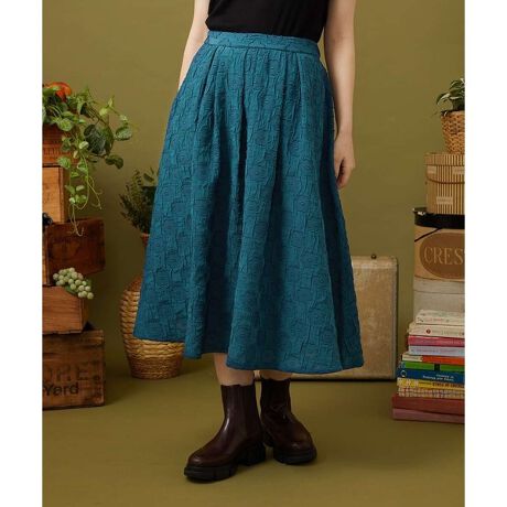 ぽこぽこしたお花の織柄が目を惹くスカート。フロントにタックを施し、ハリ感を活かしたふんわりシルエットが魅力。後ろウエストはゴム仕様できれい見えながらもリラクシーな着用感を叶えます。嬉しいポケット付き。ワントーンで立体的な花柄×シボ感のある生地の上品な印象のひと品です。