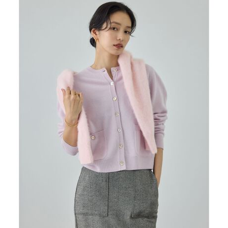 フロントの小さなボタンには、上質な天然真珠をあしらったカシミヤ混ニットガーディガン。カシミヤを贅沢にブレンドすることで硬さを抑え、なめらかな肌触りを実現。直接肌に触れてもチクチクせず、包み込まれるような心地よさを感じられます。ショート丈はインせずともスカートやパンツとのバランスが美しく、程よいゆとりがあるため、真冬は厚手のタートルやカットソーとのレイヤードも上品に楽しめます。