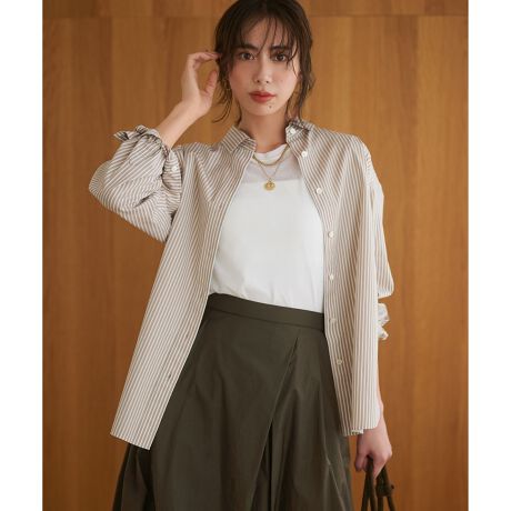 ベーシックなデザインの上質なシャツ。メンズライクなつくりですが、身幅のすっきりとしたラインがエレガントで女性らしい雰囲気を引き出してくれます。肩幅には少しゆとりを持たせているので着心地も抜群。一枚あるとロングシーズン活躍する、ワンランク上のベーシックシャツです。シンプルにデニム合わせはもちろん、タイトスカートやワイドボトムスとも相性◎。暖かい気温の時期は一枚でサラッと、寒い時期になったらニットのインナーとしてもオススメです。カラーは上品で行事などにも活躍する無地のホワイト(#001)、爽やかなブルーストライプ(#170)、今年らしいトレンド感のあるピンクストライプ(#112)、スタイリッシュなブラウンストライプ(#130)の4色展開です。