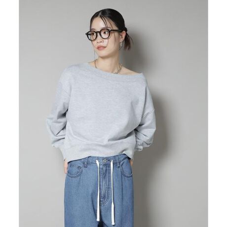 大人のカジュアルスタイルに重宝するスウェットトップス。デコルテが綺麗に見えるワイドなボートネックで、大人の女性にぴったりの上品な肌見せと抜け感が演出できます。