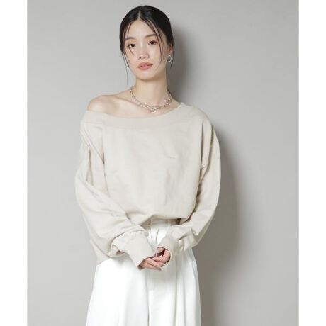 大人のカジュアルスタイルに重宝するスウェットトップス。デコルテが綺麗に見えるワイドなボートネックで、大人の女性にぴったりの上品な肌見せと抜け感が演出できます。