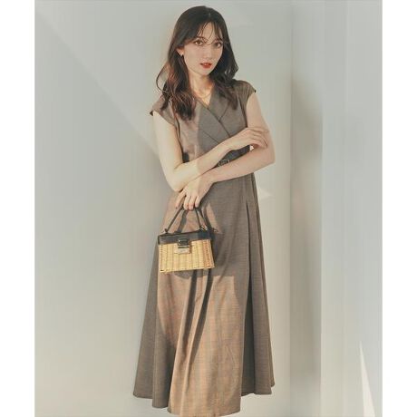 【洗練されたジレデザインを落とし込んだ、品良くクラシカルなラップ風ワンピース】【Point】・デコルテを美しく見せる深めのVネックと、ウエストを引き締める細ベルトが、女性らしくメリハリのあるスタイル美人に見せる一着。・しなやかに広がるフレアシルエットは歩くたびに優雅な揺らめきを生み、上品な佇まいを演出します。・オンオフ問わず着回しやすく、オフィスからお出かけまで幅広く活躍すること間違いなしのワンピースです。・秋のムード漂うマニッシュなブラウンチェック・グレーチェックと、洗練された印象を纏うブラック(無地)の3色展開でお届けします。ケア方法:ドライクリーニング透け感:なし裏地:あり伸縮性:なし(ウエスト部分:後ろゴムあり)光沢感:なし生地の厚さ:中肉