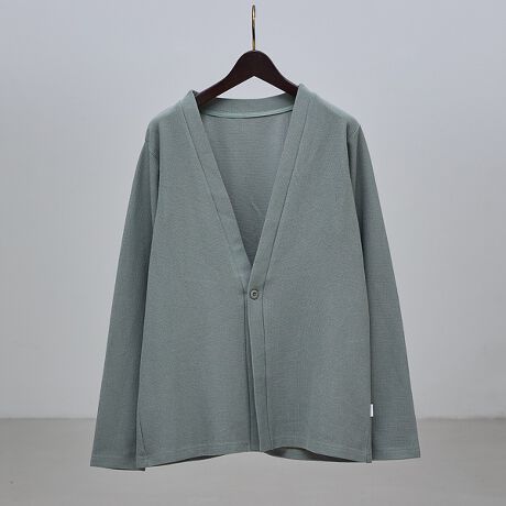 ボタンをかけても、はずしてもサマになる一つ掛けボタンカーディガン。 ワンボタンで着流せるよう最適なバランス、シルエットに仕上げました。 程よいゆとりを確保したリラックスシルエットで、品のあるすっきりとした印象にまとまります。