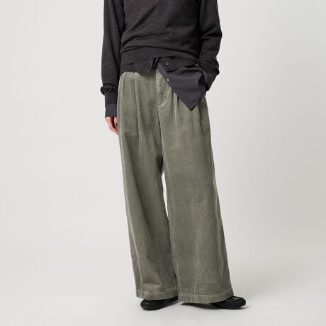 深みのあるダークブラウンとシックなオリーブのカラーコーデュロイでシーズンムードを加えた鮮度ある装いにおすすめのアイテムです。
