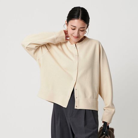 頼れる定番アイテム。カットソー生地のリングボタンカーディガン。