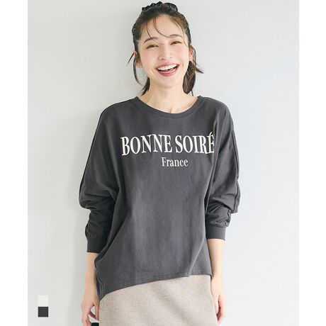 ゆったりとしたドルマンスリーブが特徴の、こなれ感漂うロゴTシャツ。
