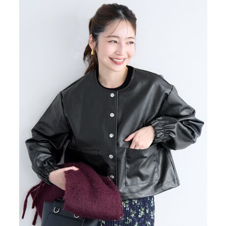 大人の上品さ漂う。フェイクレザーノーカラージャケット