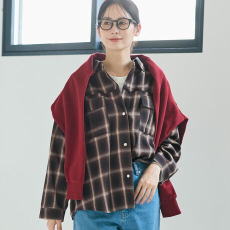 ラフに羽織れる、チェック柄スナップボタンシャツ