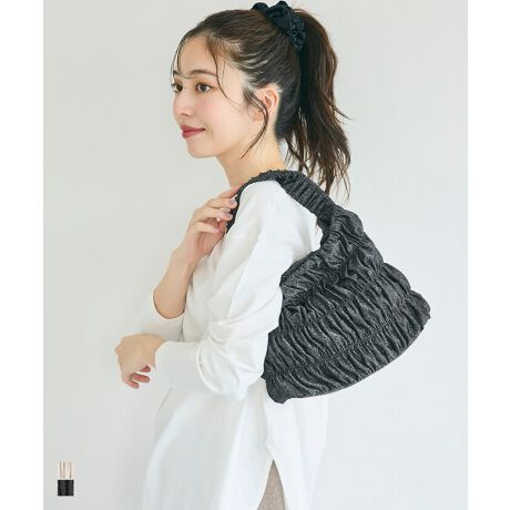 クシュクシュと寄せたギャーデザインが、女性らしいふんわり感をプラス。