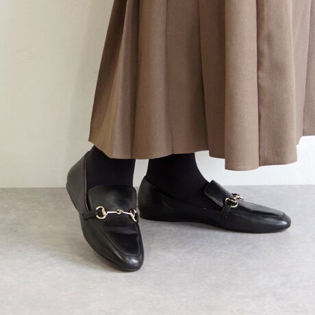 足元にゴールドビットの輝きを添えることで、洗練された通勤スタイルに。