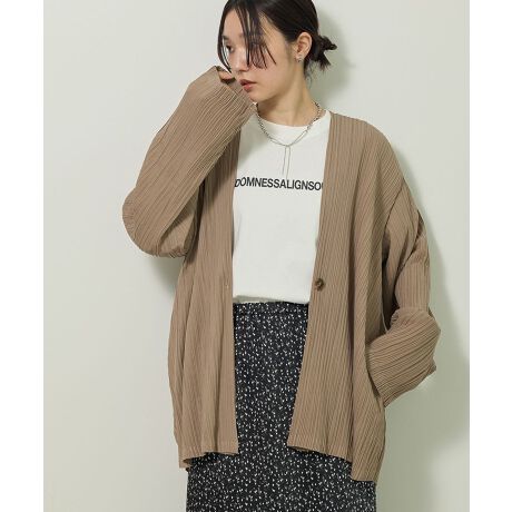 ピッチを変えた独特なプリーツが着映えを叶えるノーカラージャケット。軽量仕上げでライトに羽織って頂ける一着です。丈感長めのゆったりとしたシルエットにフロントの一つ留めボタンがすっきりと演出。カーディガン感覚でラフに着用出来、デイリーカジュアルにも合わせていただけるおすすめのアイテムです。透け感[ややあり]