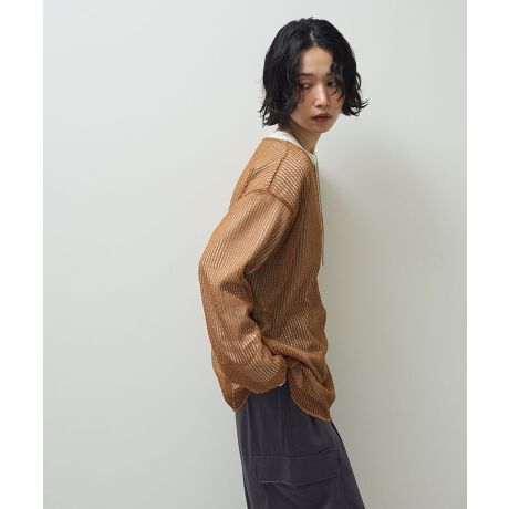 トレンドのシアーメッシュ素材でカジュアルに仕上げたプルオーバー。前後どちらを前にしても着用できる2WAY仕様もポイントです。ゆるりとしたサイズがラフでこなれた雰囲気を演出。透け感を活かして色柄物インナーとのコントラストを楽しむのもおすすめです。合わせ方次第で着こなしの幅も広がる魅力的なアイテムです。透け感[ややあり]