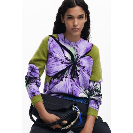 ムッシュ・クリスチャン・ラクロワがデザインした蘭のプリントが施された、長袖クルーネックの薄手のセーター。