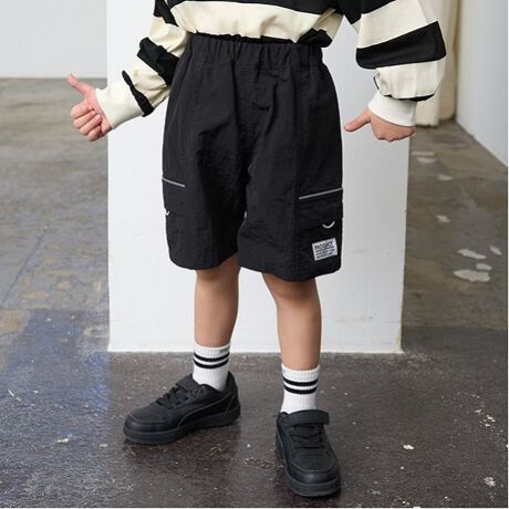 通園通学などのデイリー使いにはもちろん、撥水加工を施しているので水遊びやキャンプなどのアウトドアシーンでも活躍する4分丈パンツです。