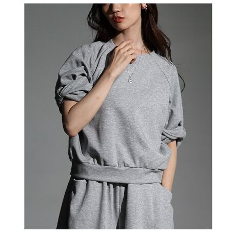 【トレーナー】 トップス スウェット カットソー グレー 半袖 5分袖 リボン コットン 綿 無地