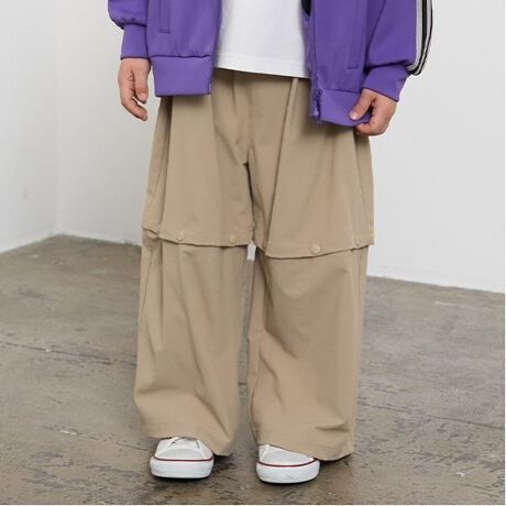 気分に合わせて丈チェンジ!スナップボタンで簡単丈調整!ロング丈とショート丈、2つのスタイルを楽しめるイージーパンツ。