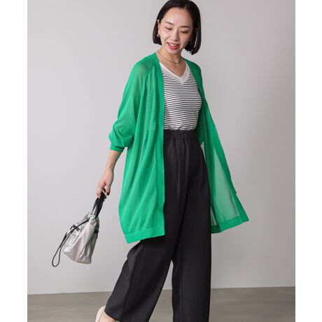 さらりとした肌ざわりのレーヨン×ナイロン素材。軽やかで落ち感があり、カットソーやロンTの上に合わせてももたつかないのが魅力。薄手ながらも長袖インナーやブラウスとレイヤードしやすく、秋口から冬の入り口まで活躍します。