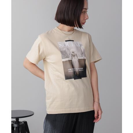 デザイン性のあるフロントプリントがポイントのコットンTシャツ。適度な厚みとハリのある生地感でディテールにこだわった一枚です。脇に縫い目のないホールガーメントなので着心地が良く、お洗濯などで脇がヨレることもありません。主役級の存在感のあるオリジナルプリントが目を惹きスタイリングの質を上げてくれます。袖丈をロールアップしてラフなカジュアル感をプラスするのもおすすめ。