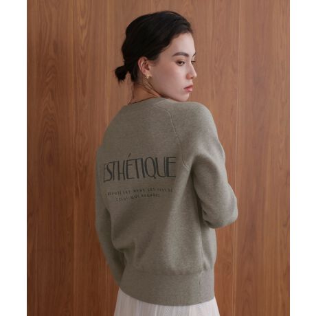 前には「星空の夜」、後ろには「美的」「美は見る人の願いの中にある」── そっと心に響く刺しゅうを、さりげなくあしらいました。ロゴニットなのにカジュアルすぎず、キレイめにも着こなせるのが嬉しいポイント。シンプルだけど印象に残る、大人の一枚です。