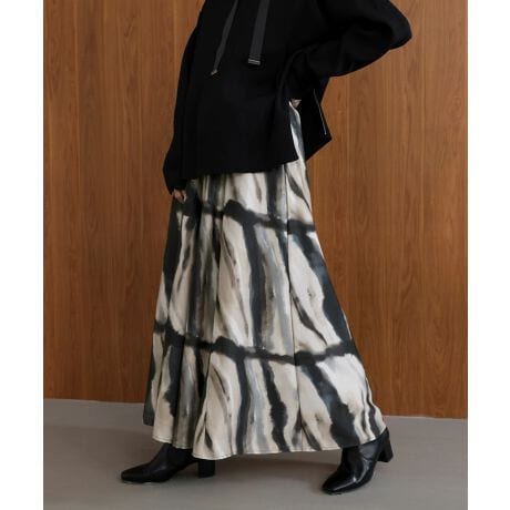 マーブル柄とたっぷりとした分量感ある裾が、動く度にエレガンスな装いを演出します。落ち感ある素材で、歩くたびに表情が違って見えるスカンツ。足さばきもよく、スタリングを選ばず活躍するアイテムです。ウエストもカットソー素材でやわらかく、締め付けを軽減してくれます。