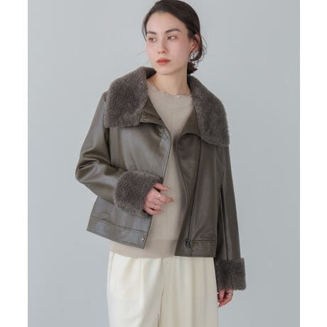 レザーのクールな雰囲気に、襟元と袖口のファーでほんのり甘さをプラスした一着。取り入れやすいバランスに仕上げました。斜めに入ったチャックが、定番レザージャケットにさりげないアクセントをプラス。羽織るだけでコーデが決まり、シンプルなトップスやワンピースとも好相性です。見た目以上に軽く、さっと羽織れる着やすさも魅力。デイリーにもお出かけにも活躍します。