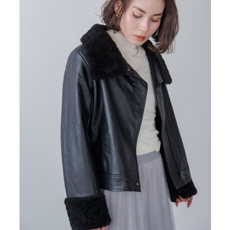 レザーのクールな雰囲気に、襟元と袖口のファーでほんのり甘さをプラスした一着。取り入れやすいバランスに仕上げました。斜めに入ったチャックが、定番レザージャケットにさりげないアクセントをプラス。羽織るだけでコーデが決まり、シンプルなトップスやワンピースとも好相性です。見た目以上に軽く、さっと羽織れる着やすさも魅力。デイリーにもお出かけにも活躍します。