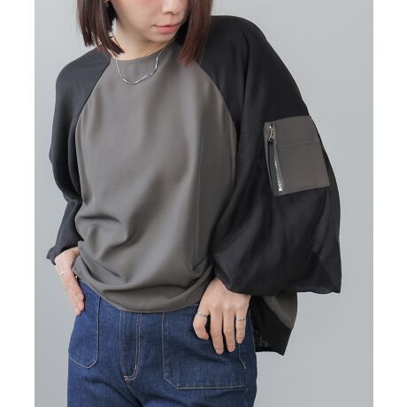 身頃はポリエステル100%で軽く、デイリーに使いやすい素材感。袖部分には再生繊維(セルロース)80%・ナイロン20%の別布を使用し、柔らかさとハリ感を両立しました。