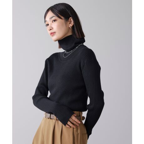 シンプルなのに、どこか雰囲気のある着こなしを叶えます。細やかなリブ編みで仕立てたニットは、ほどよいフィット感がありながらも、ぴたっとしすぎない絶妙なシルエット。身頃と衿でリブ幅を変えることで、視覚的にも上品な立体感を生み出しています。