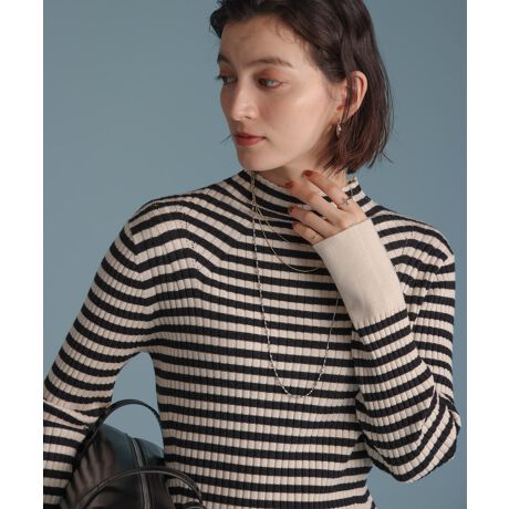 編み地のリズムでつくる“すっきり見え”シルエット。細めのリブが縦のラインをきれいに見せ、無理のないフィット感で身体を包みます。伸縮はほどよく、ぴたっとしすぎない絶妙なサイズ感。一枚でもインナーとしても使いやすく、コートの中でももたつかないスマートな着心地です。
