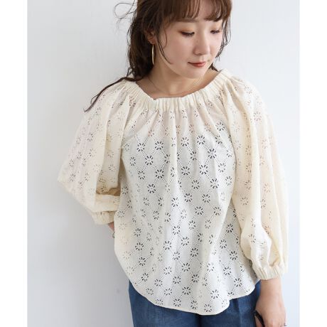レース素材を使用したオフショルダーブラウス。