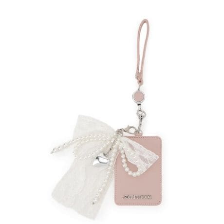 パール調とレースのリボンチャームが可愛いパスケース