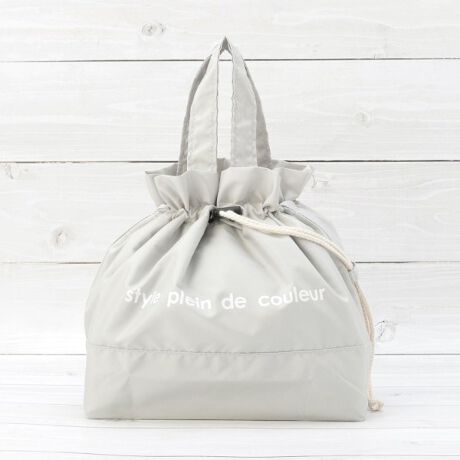 使いやすい、巾着袋型のランチバッグ、便利な持ち手付きタイプです。