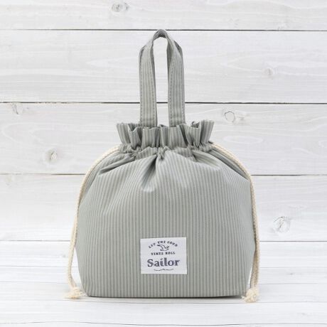 ストライプにロープを合わせた、爽やかテイストのランチ巾着バッグ。